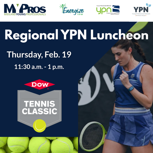 YPN members from Saginaw, Bay, and Mount Pleasant will join MYPros for a delicious lunch, live match play, and an engaging panel discussion featuring representatives from the Greater Midland Tennis Center and a player from the tournament!